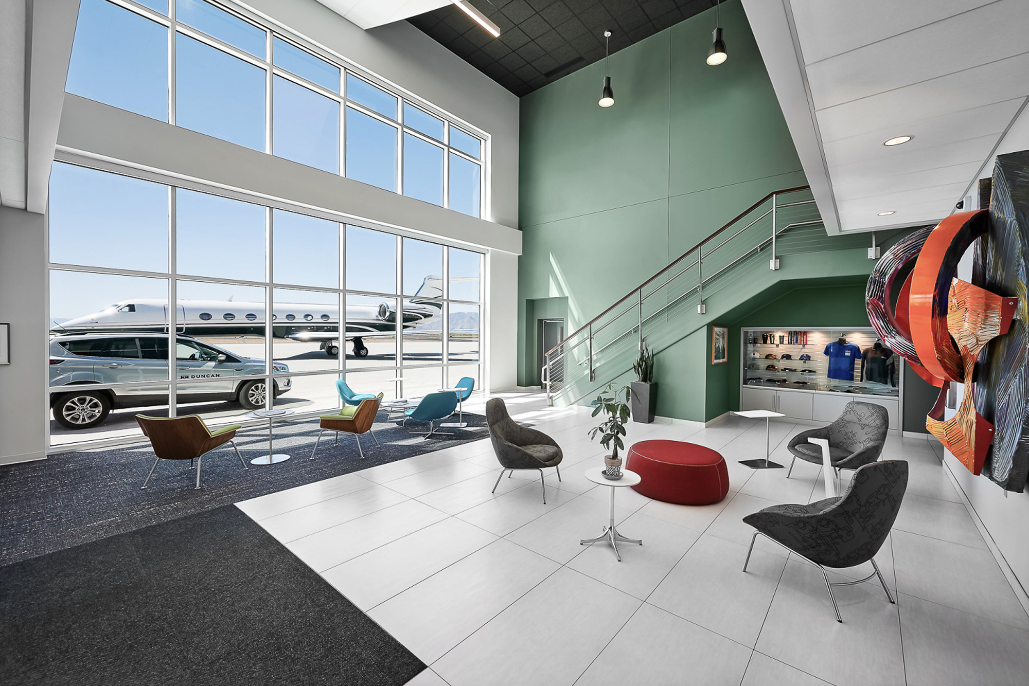 Architectural photography of terminals, lounges, hangars, and MRO spaces. Aligns with commercial design standards, aviation brand expectations, and operational flow.
